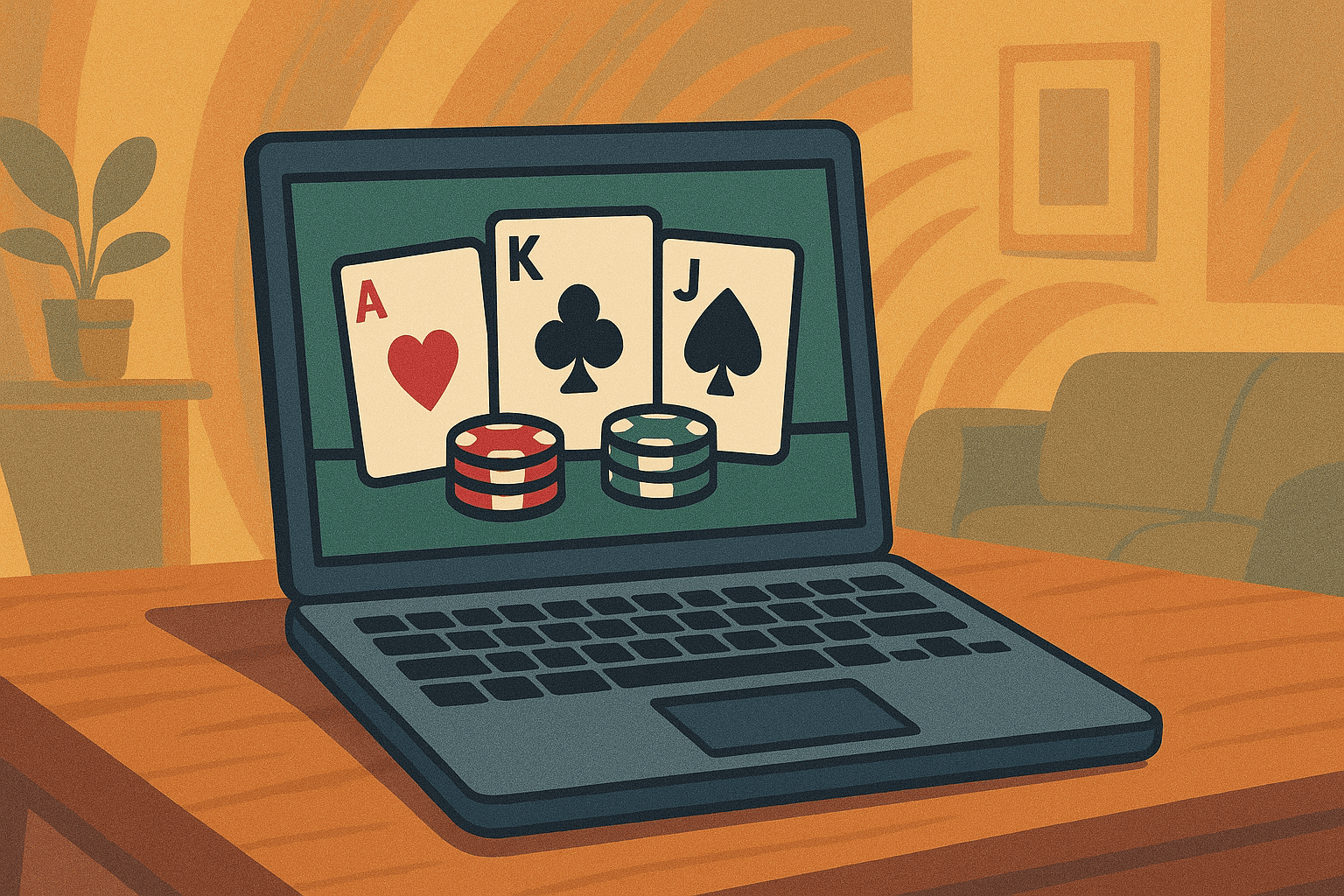 - Players sit behind a computer screen and watch the dealer’s live stream.