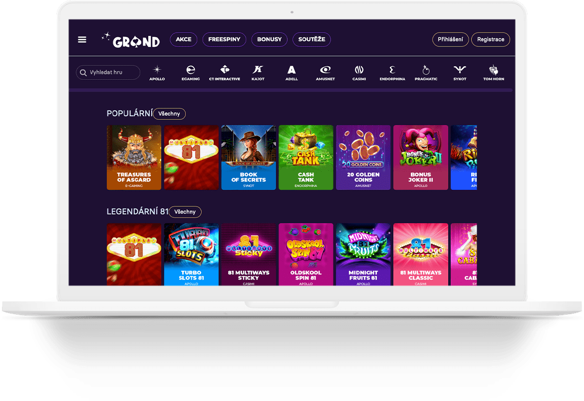 The main signup bonus is 150 CZK in free spins for spinning 1500 CZK + 200% on the second deposit. Exact rules always on the Grandwin website.